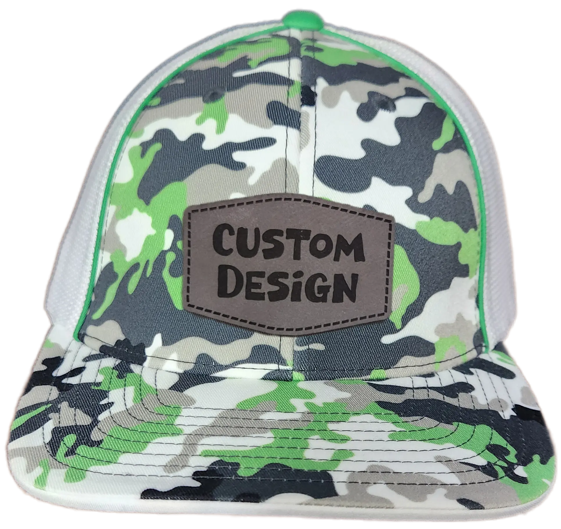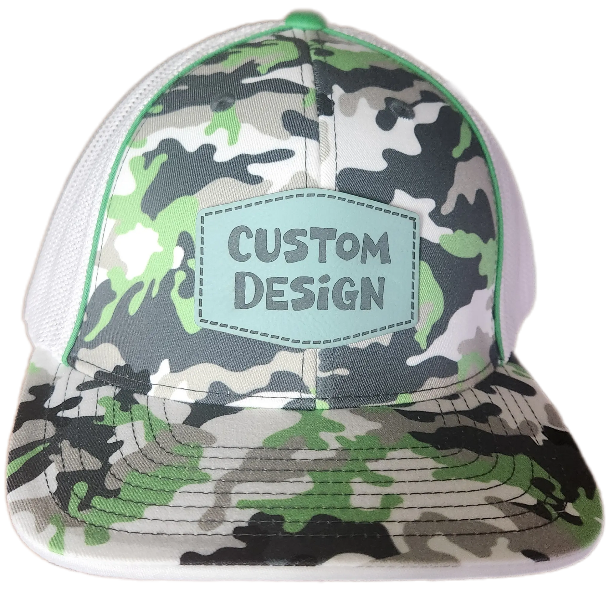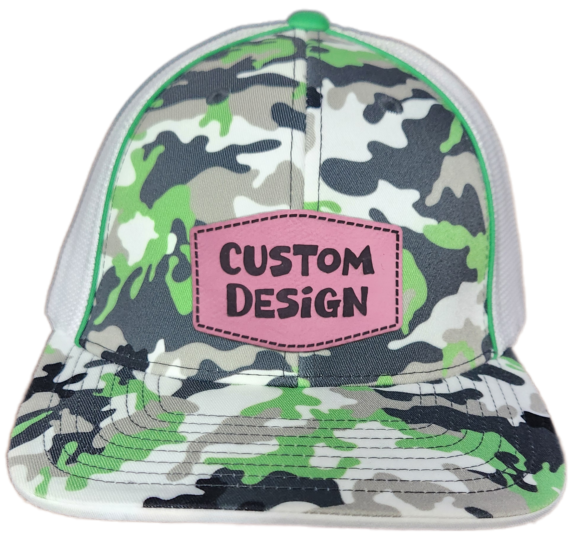 Custom Patch - Pacific Headwear Glamo Mesh Flex Fit Trucker Cap - GREEN/WHITE/BLACK/CAMO